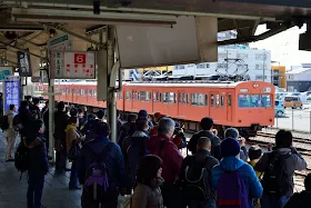 | オレンジの電車ではなく私らヲタを撮ってるね! |